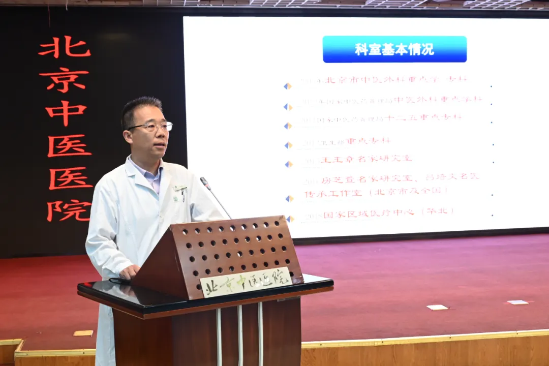 北京中医医院院长刘清泉对专家组的到来表示热烈欢迎,并从医院教学底蕴、住培概况、住培建设、内涵提升、立德树人等方面对规培工作进行了全面汇报;随后,急诊科、疮疡血管外科相关负责人代表科室作培训专业工作汇报。