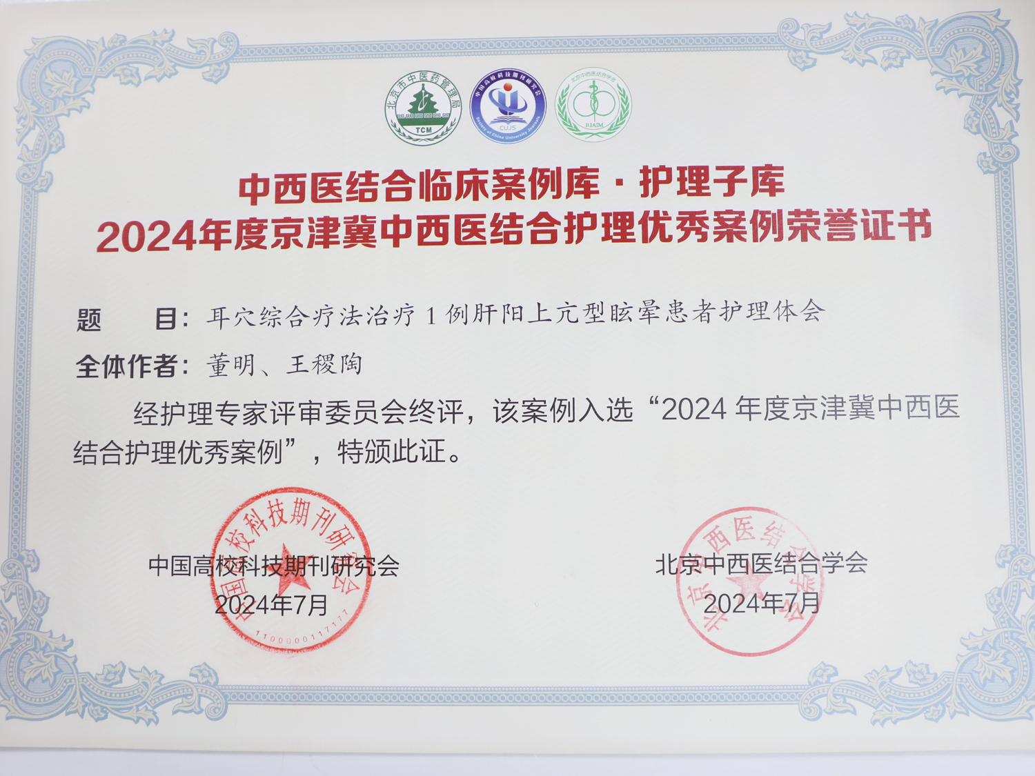 2024年3月至6月,在北京市中医药管理局指导下,中国高校科技期刊研究会和北京中西医结合学会开展了“2024年度京津冀中西医结合护理案例”征集活动,该活动也是北京中西医结合学会“上工杯”学术活动之一。