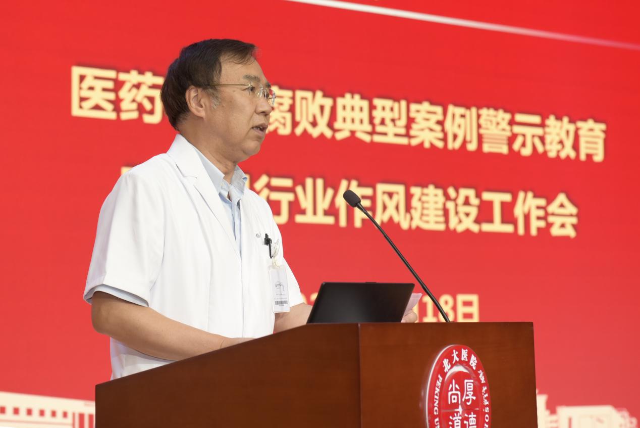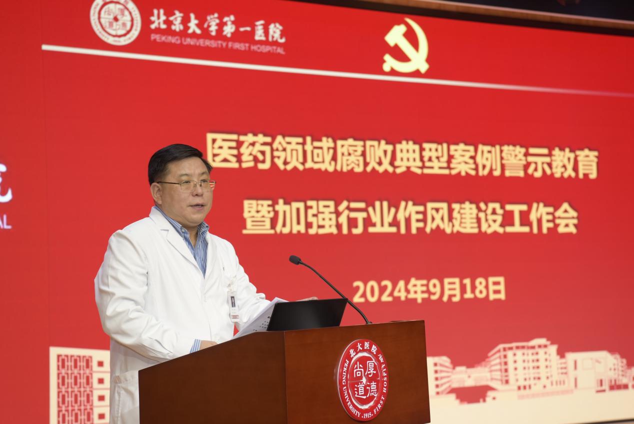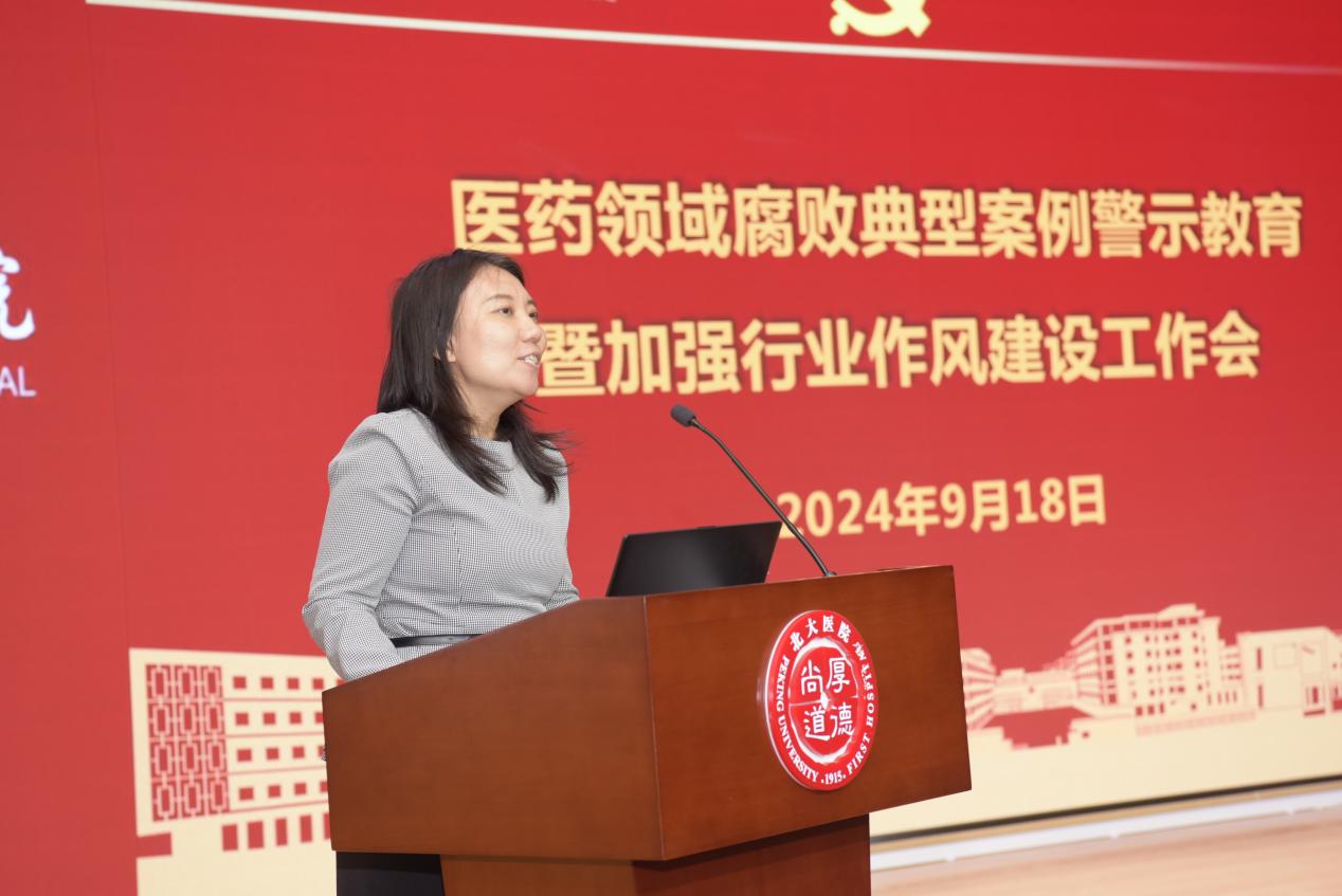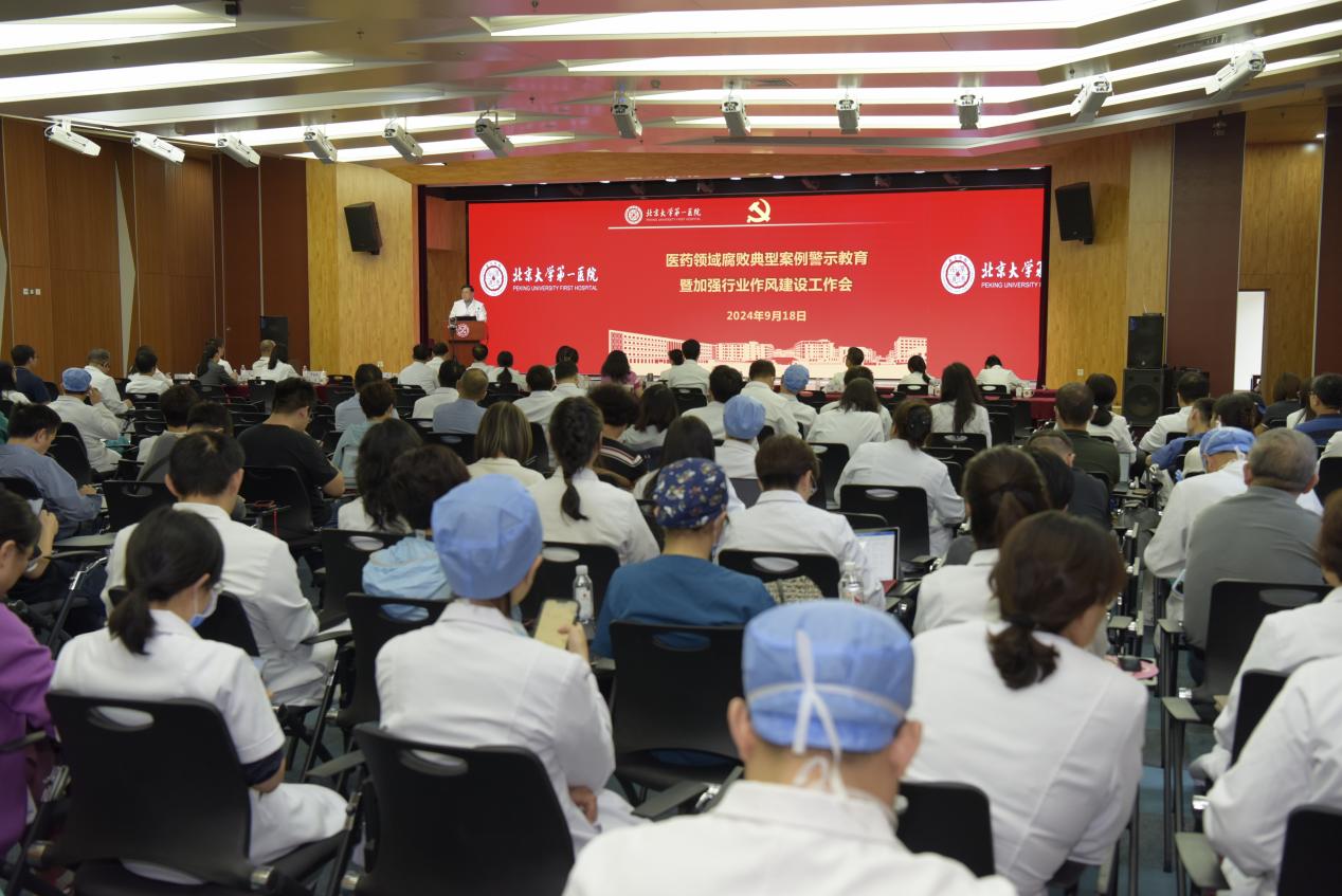 为深入学习贯彻习近平总书记关于党的自我革命的重要思想,坚决落实全面从严治党战略方针,推动党的纪律教育常态化长效化,纵深推进正风肃纪反腐,北大医院于9月18日下午召开医药领域腐败典型案例警示教育暨加强行业作风建设工作会。北京大学医学部纪委副书记、监察室主任高静同志莅临指导,医院党政班子成员,党委委员、纪委委员、中层干部、党支部书记和纪检委员、科护士长等200余人参会。