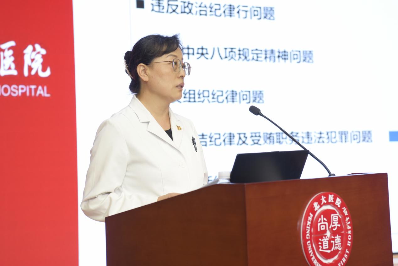 北京大学医学部高静纪委副书记在讲话中对北大医院高度重视纪检工作、不断增强纪检履职能力和本领、持续加强医疗行风建设表示充分肯定。同时,高静副书记提出了三点殷切希望: