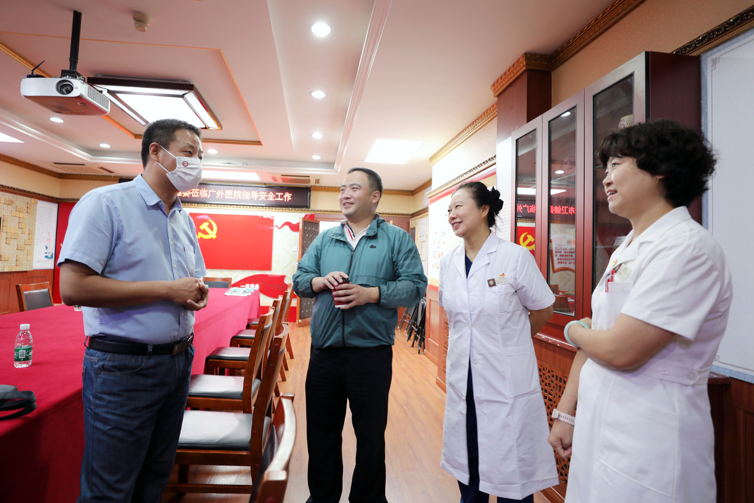 9月26日上午,北京市卫生健康委专家指导组一行来到广外医院,现场检查和指导安全生产与消防安全工作。西城区卫生健康委安委会魏来同志,广外医院院长宋莉红、副院长张娜及相关科室负责人高度重视,全程陪同和随行介绍。