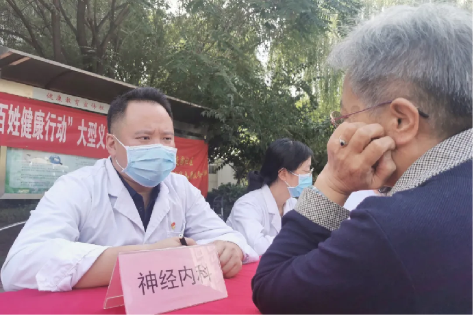 义诊现场,妇科主任医师柳肃芬、骨二科副主任医师曹三利、心内二科副主任医师祖琳娜、神经内一科李洪亮博士、中医科主治医师陈璐、内分泌科医师石金铭结合自身专业,针对居民群众关心的疾病预防和诊治等健康问题进行耐心细致地解答,并给予健康知识普及。