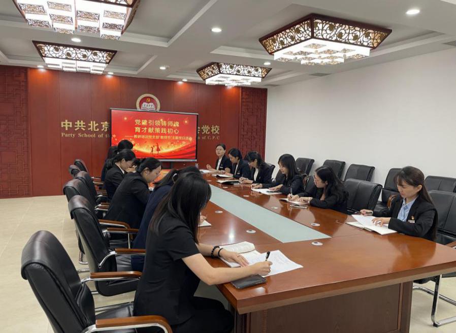 强国必先强教,强教必先强师。为深入贯彻落实党的二十大和二十届二中、三中全会精神,深入学习贯彻习近平总书记关于教育工作的重要论述和大力弘扬教育家精神的重要指示,进一步增强党校教师的职业感、荣誉感、使命感,激发干事创业的热情和动力。近日,在第40个教师节之际,北京市卫生健康委党校教研培训党支部以“党建引领铸师魂 育才献策践初心”为主题,组织开展教师节主题党日活动,校党总支书记、常务副校长朱绍茹同志出席活动。
