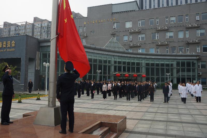 9月29日,石景山区卫生健康委举行庄严的迎国庆升国旗仪式,热烈庆祝新中国成立75周年,向伟大祖国致以崇高敬意和美好祝福。区卫生健康委机关、院内委属单位、区红会全体干部职工参加升旗仪式。