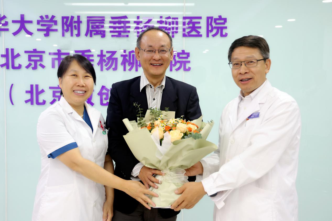 最后,张新庆和赵伟为对口支援干部程少为送上鲜花,以表示对他结束两年的对口支援任务回归医院表示欢迎。与会人员进行合影留念。