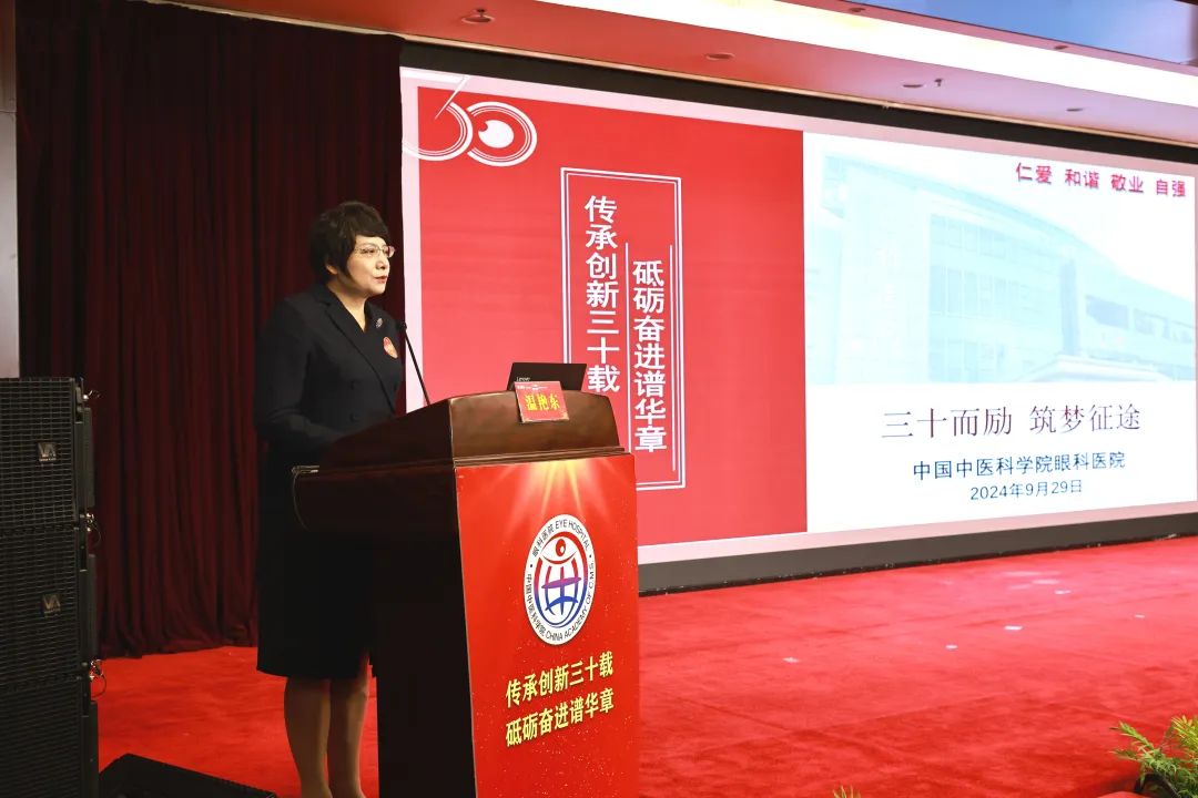 中国中医科学院党委书记查德忠在致辞中充分肯定了眼科医院取得的突出成绩,希望眼科医院以建院30周年为新起点,深入贯彻落实习近平总书记贺信精神,牢记嘱托、感恩奋进,以高质量党建引领医院高质量发展,以全面深化改革促进医院高质量发展,以高质量服务彰显医院高质量发展,在做大做强中国中医科学院的进程中谱写眼科人的华彩乐章。