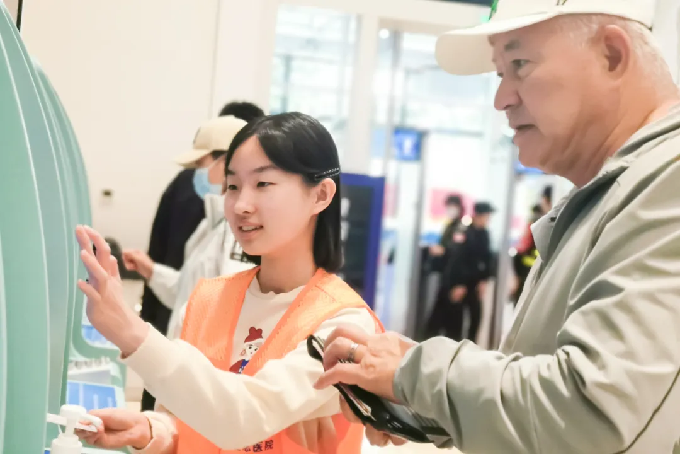 “您哪不舒服?”国庆期间,航空总医院门诊工作人员一如既往地耐心询问来院患者需求。志愿者也像往常一样早早出现在医院各个岗位,帮助患者挂号、缴费,引导患者有序就诊。