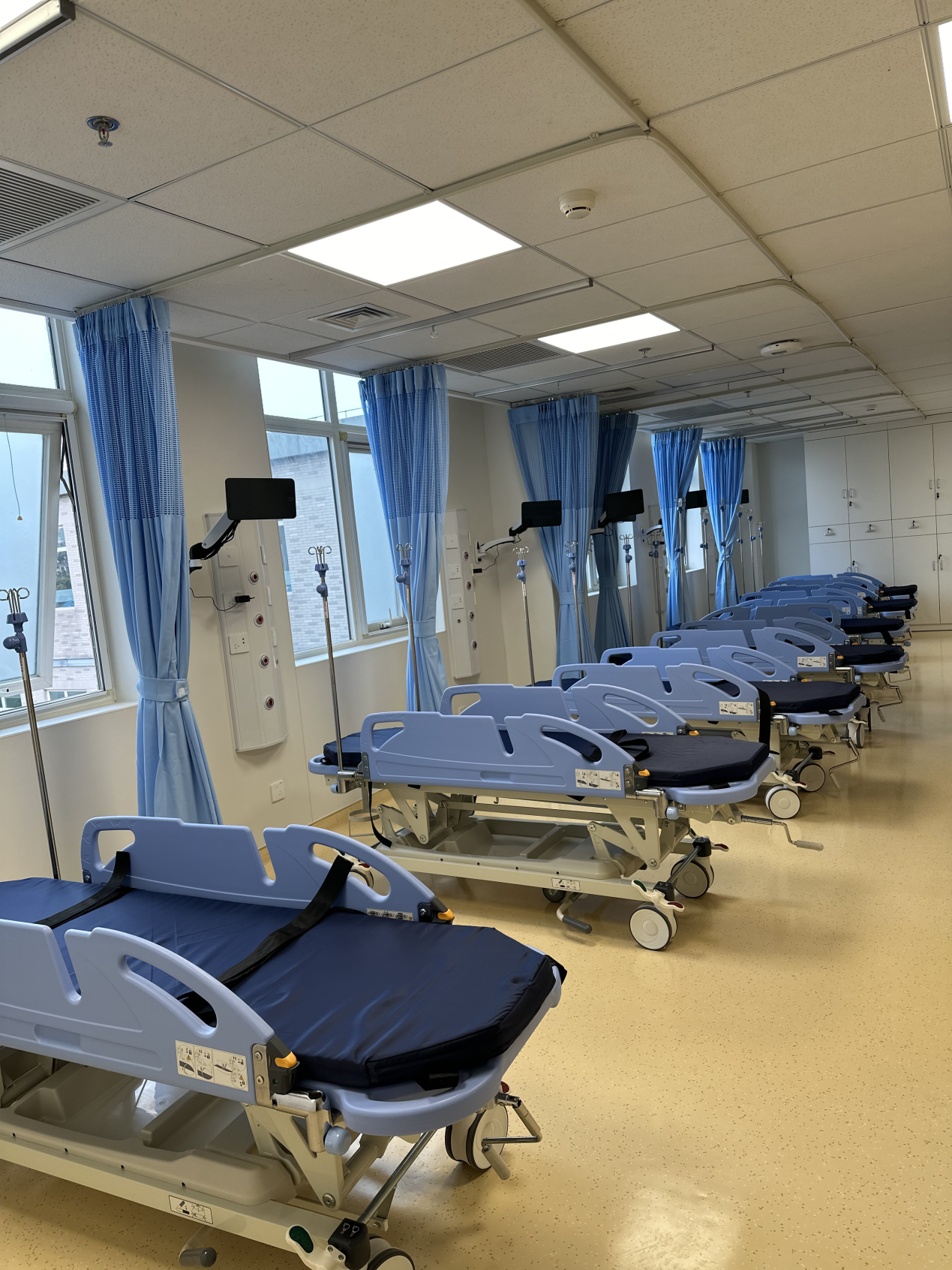 日间病房共开设40张床位,提供整洁、舒适、温馨、安全的住院环境,让患者在住院期间能够享受到家一般的便利。病房内的布置简洁温馨、色彩柔和,有助于缓解紧张情绪。每张病床设有全包裹式隔离帘,确保患者隐私得到充分尊重。病房配备无线穿戴式心电监护设备,方便患者下床活动;同时监护数据实时传送至中心站,医务人员可密切观察生命体征,确保患者安全。病房设置“健康宣教角”,通过手机“扫一扫”轻松了解围手术期快速康复要点及出院后随访注意事项。