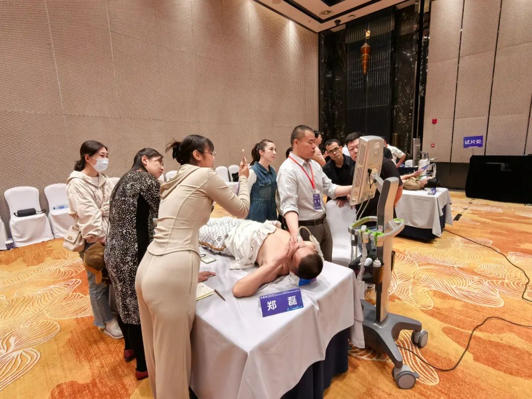 下午的超声Workshop更是将会议推向了高潮。清华一附院郑磊医师、首都医科大学附属北京潞河医院姚鹏飞医师、首都医科大学宣武医院王小平医师等多位超声医师分别就肌骨超声肩颈、下肢组、脊柱躯干组等进行了现场演示与讲解,让参会者直观感受到了超声技术在疼痛治疗中的广泛应用与独特魅力,约40余人参与了培训。