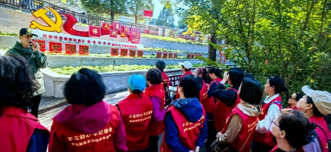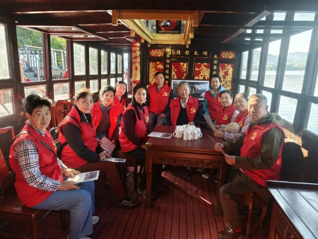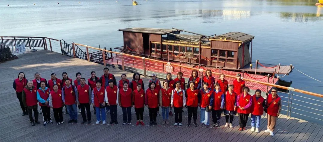 为进一步增强党组织的凝聚力和战斗力,汲取红色精神。当日下午,离退休党总支组织大家在雁栖湖红色教育基地开展了主题参观学习。老党员们在引导员的带领下,先后瞻仰了金灯山英烈雕塑,聆听了英烈在金灯山英勇战斗的事迹。登上红船,沉浸式体验中共“一大”会议情景,重温入党誓词,穿越百年党史,踏着革命先烈的足迹追忆中华民族伟大复兴之路。