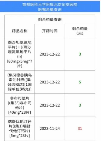 还有几天能开药一看便知,北京佑安医院药品剩余天数自助查询服务真方便