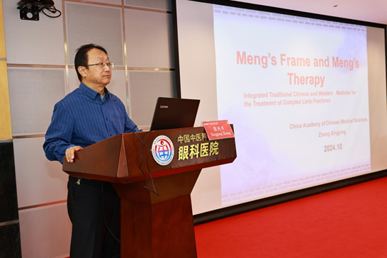 首场讲座由中国中医科学院中医药数据中心主任、知名骨科专家张兴平主任带来,围绕中西医结合治疗复杂四肢骨折技术,孟氏架与孟氏疗法,张兴平主任以深厚的中医骨伤科理论和大量的临床病例,详细介绍了我国中西医结合治疗骨折创始人尚天裕教授及骨折复位固定器疗法(孟氏疗法)创始人和倡导者孟和教授的学术思想,并展示了孟氏架在治疗复杂四肢骨折的独特优势。