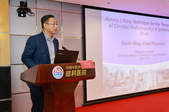 中国中医科学院望京医院(骨伤科研究所)副院长杨克新分享了朱立国院士创建的旋提手法治疗神经根型颈椎病系统研究,并现场为大家展示旋提手法操作过程,娴熟的手法赢得与会者的一致赞赏。