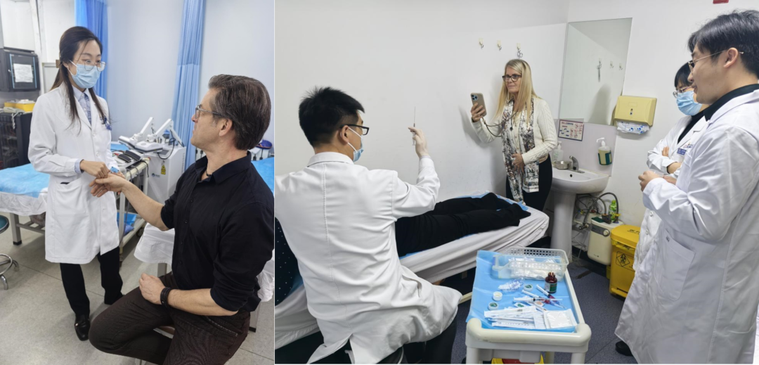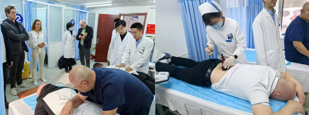下午来自挪威、波兰、瑞典的专家参观了骨科病房,骨科杨胜平主治医师讲解八段锦,并带领国外专家现场学习,骨科护士长王沙沙介绍了骨伤科中医适宜技术及操作演示,专家亲身体验了按摩、中药药透、中药膏摩、针灸、小针刀等中医适宜技术,感受了中医骨伤的独特魅力。