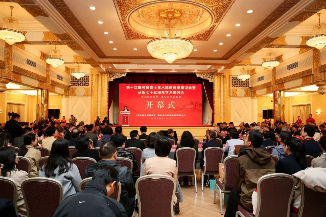 2024年10月19日,以“传承创新发展 谱写时代新篇章”为主题的第十次陈可冀院士学术思想传承座谈会暨从医七十五周年学术研讨会在京举行。陈可冀院士、韩济生院士、陈凯先院士、陈香美院士、田金洲院士,国家卫生健康委员会党组成员、国家中医药管理局党组书记、局长余艳红,中华中医药学会会长于文明,中国中药协会原会长房书亭,中国中医科学院党委书记查德忠,北京市中医药管理局党组书记、局长罗增刚等出席大会开幕式并讲话。韩启德院士、肖培根院士、张伯礼院士、王琦院士、仝小林院士分别致信祝贺。开幕式由西苑医院党委副书记、院长李秋艳主持。