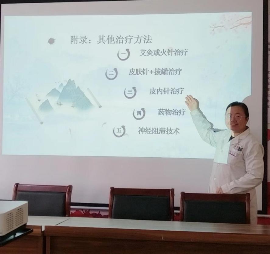称多县人民医院是称多地区规模最大、学科最全的综合性医院,承担医疗、教学、科研、预防保健任务。医院高度重视医务人员的教学教育工作,青海省内派出的青南支医队员和北京市派出的援青医疗队员都会针对本院的医护人员开展专业技术的培训讲座,为高原留下一支带不走的医疗队。韦薇大夫通过诊疗患者的临床经验和跟本地医护人员交流,认为当地许多患者罹患慢性疼痛,慢性疼痛的病因多为各种骨关节病和带状疱疹等。因此她特地在培训中向医护人员讲解,不能只用止痛药“头痛医头脚痛医脚”,哪些疾病采用中藏医治疗具有优势,具体采用哪些中藏医治疗手段等,从而开拓医护人员的视野,提高他们对疾病的认识,为高原的医疗事业发展做贡献。