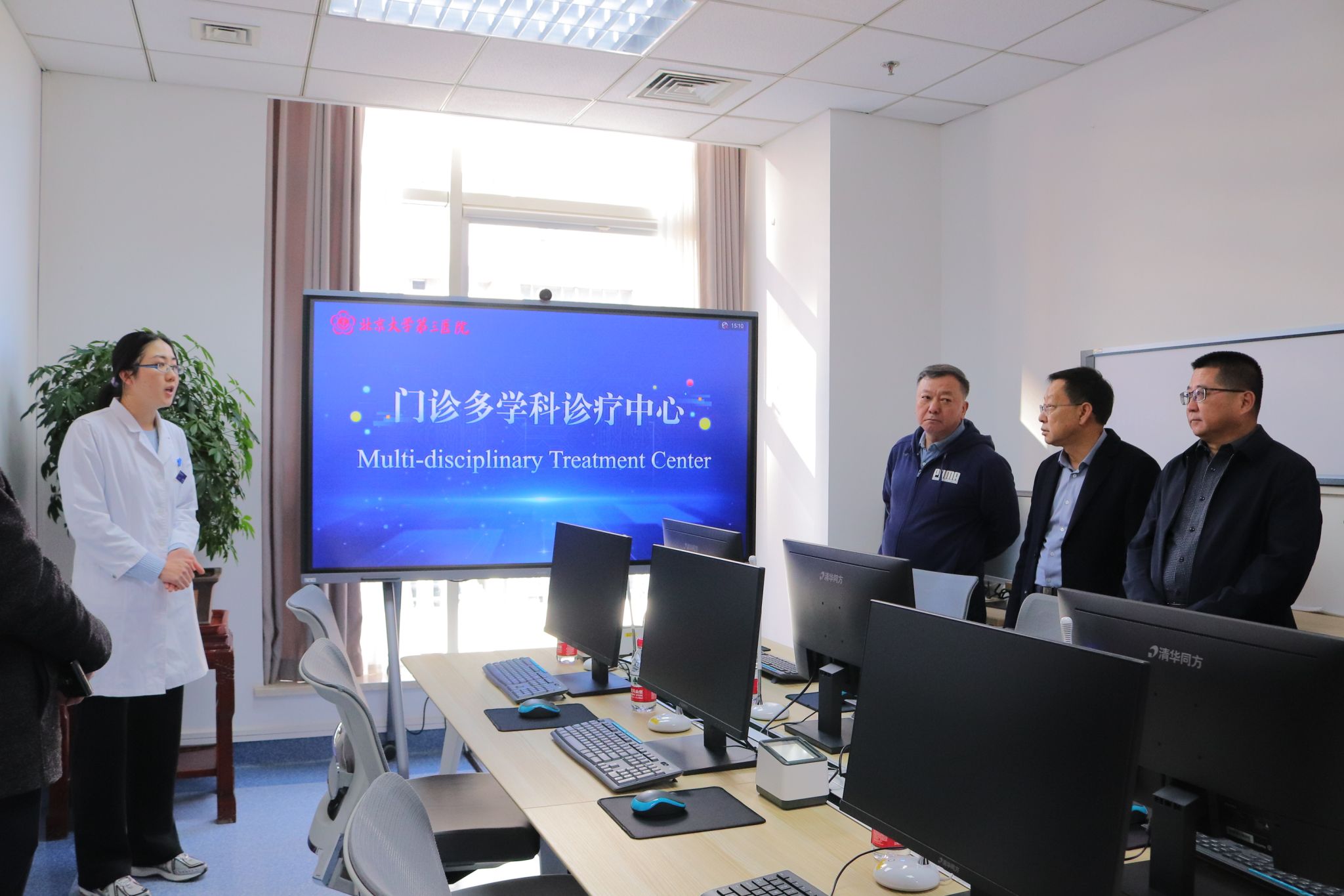 座谈会后,与会人员实地参观了北京大学第三医院北方院区和北京大学第三医院本部远程会诊中心、门诊多学科诊疗中心、康复医学科等地,并就深化合作进一步沟通交流。