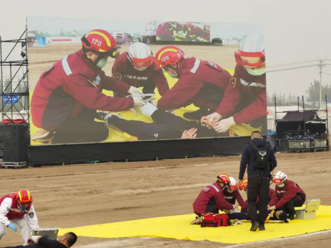 北京中医医院参与演练现场紧急医学救援环节,骨伤科护士王翠梅模拟地震中砸伤小腿胫骨骨折伤员,骨伤科医生吴迪、郑皓云与河北省中医院的同道一起进行针灸镇痛、手法复位、小夹板固定等操作,凸显了灾害救援中中医技术简便廉验的优点。其他队员认真参与演练,并观摩其他团队的营区搭建、先进设备设施,互相切磋交流,获益匪浅。