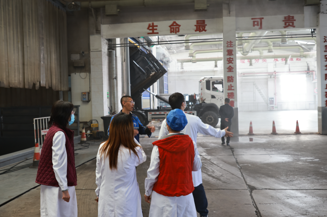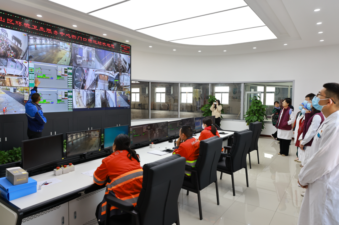 首先,在中国中医科学院眼科医院门诊综合党支部书记王东红同志的带领下,由12名党员及群众组成的医护团队跟随环卫中心转运站副站长参观了转运站的压装车间、卸料平台和中控站等设施,了解了我区生活垃圾转运的专业作业内容。医护团队现场体验了压装车间先进的排气、除臭技术,切身体会到社会科技的发展为生活带来的巨大改变。
