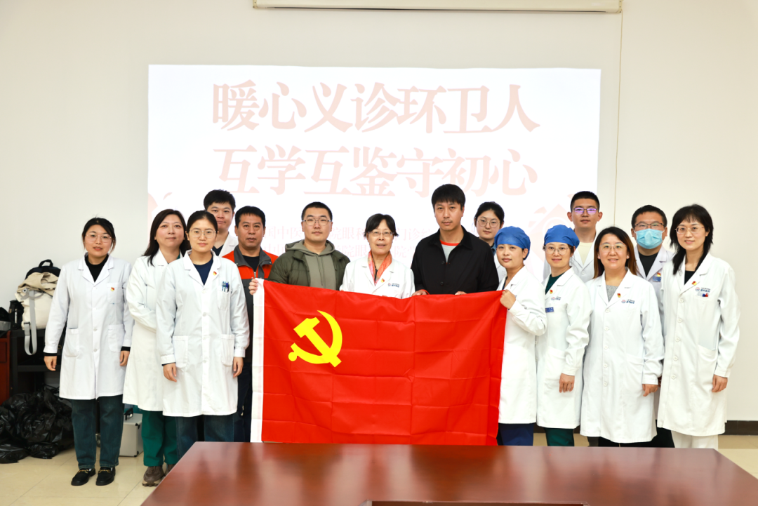 在随后的座谈会中,王东红同志介绍了眼科医院的基本情况,环卫中心副主任梁轩同志也向大家讲解了环卫工人们的工作日常和健康需求,全体党员们就如何推进党建和业务工作深度融合,贯彻群众路线进行了交流,探讨如何常态化开展“我为群众办实事”实践活动,更好地服务基层。