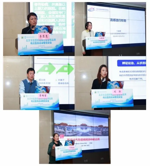启动仪式结束后,哨点成员单位人员进行了培训。李秀惠教授首先介绍了哨点医院的建立和本次中医证候监测项目的总体部署;北京市疾病预防控制中心马春娜副主任医师讲授了2024年流感流行形势;北京佑安医院李侗曾教授讲解了流感样病例的诊断及调查表采集的前期工作总结;北京佑安医院刘洋副主任医师对《流感样病例中医证候监测调查表》进行了解读;北京中医药大学东直门医院于国泳教授讲解了五运六气在疫病预测中的作用。最后,各单位学员就调查表的相关内容与专家进行了交流讨论。