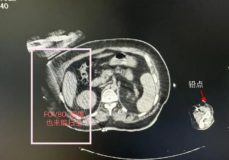 这位患者的定位有三大难点,一是要保证患者手臂远离身体,在治疗肿瘤的过程中尽量减少正常组织照射剂量;二是不能偏床太多,要保证在加速器室治疗时能正常旋转机架,不中断其出束;三是患者体形微胖,要选择常规定位胳膊置于体侧且不影响其扣膜。