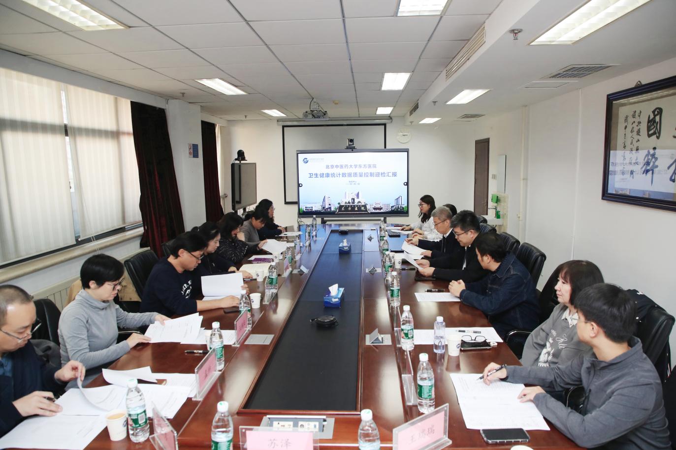2024年10月29日,北京市卫生健康委员会发展规划处副处长赵妍慧、北京市卫生健康大数据与政策研究中心副主任郭默宁等一行12位专家来到北京中医药大学东方医院开展2024年度卫生健康统计数据质量控制检查。党委副书记、院长商洪才,副院长吴疆及医院相关科室负责人参加迎检,会议由东方医院数据中心主任胡雅欣主持。