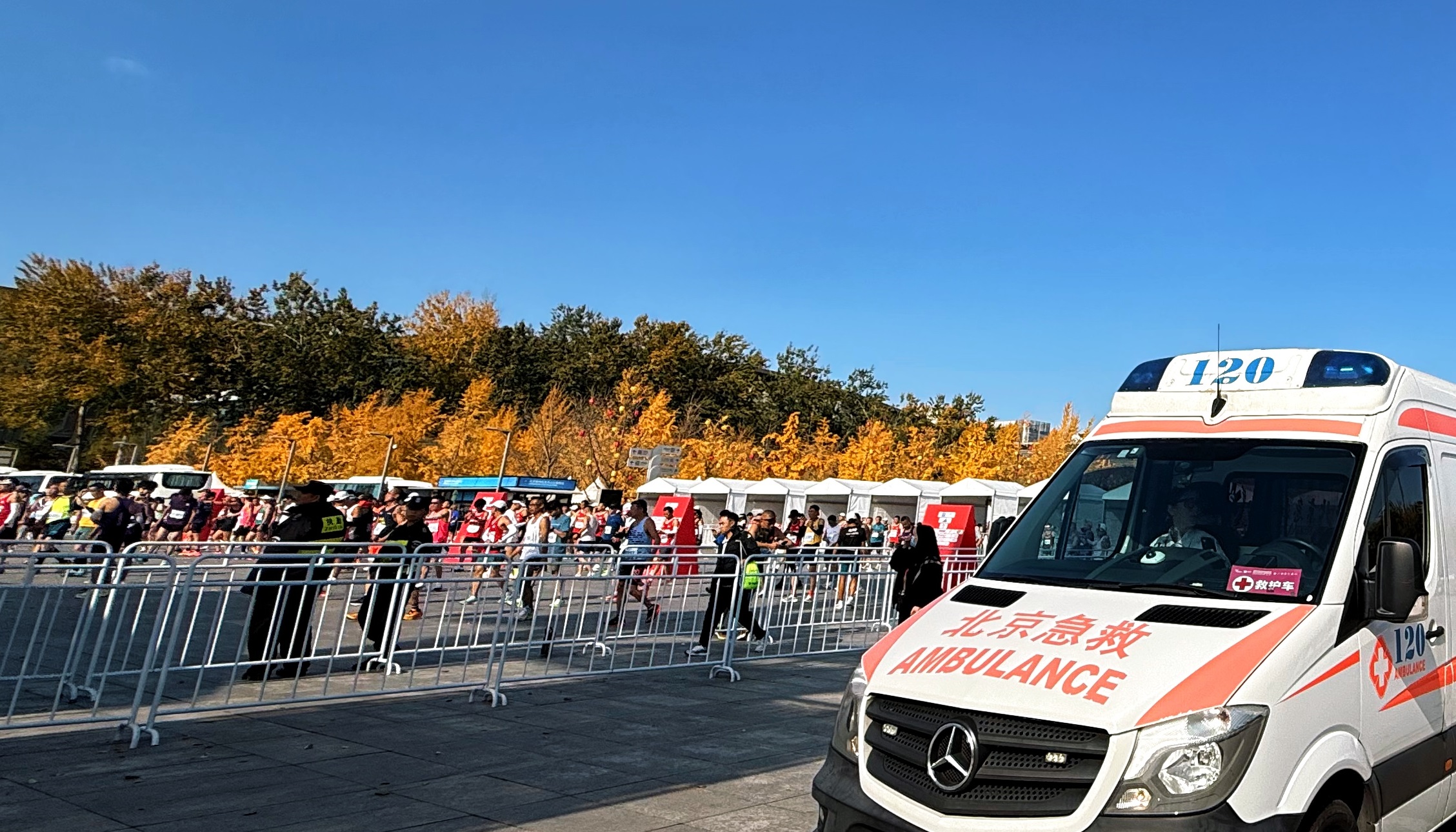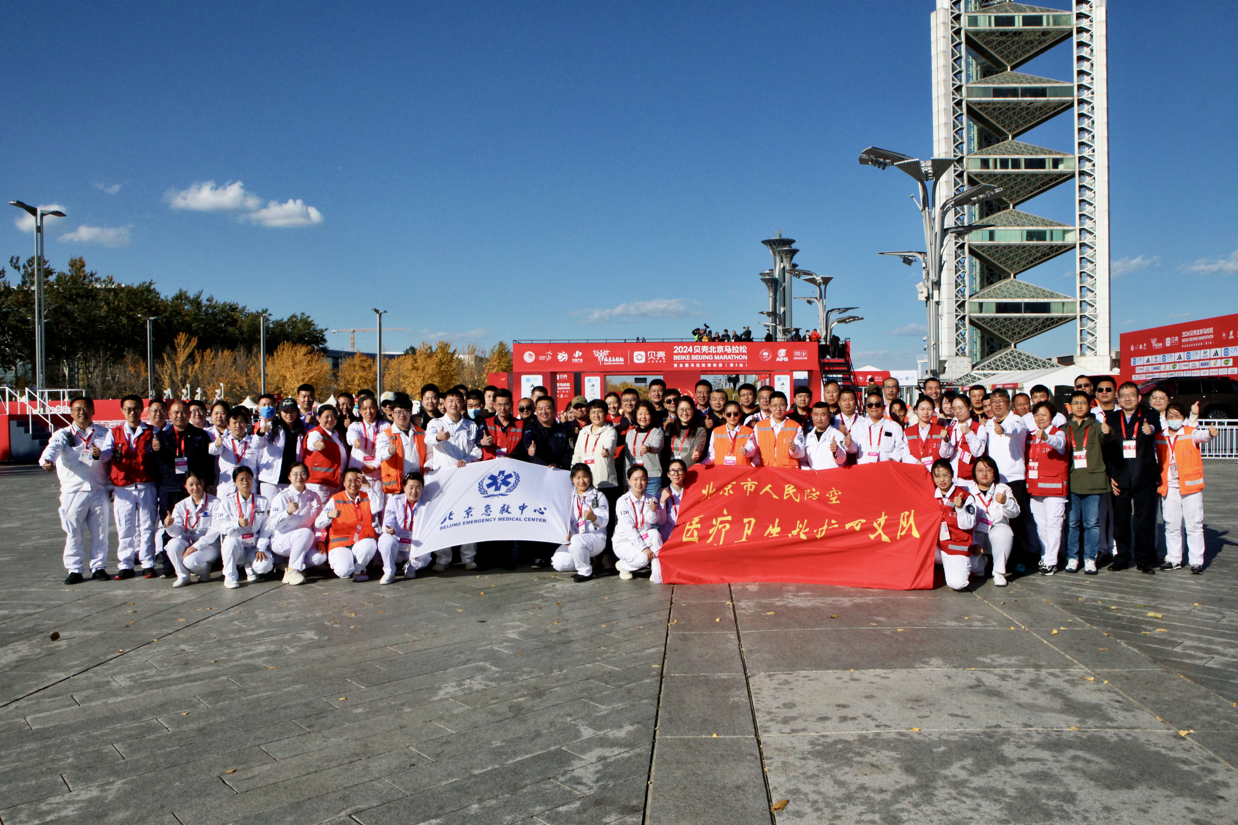 2024年11月3日7:30,2024贝壳北京马拉松暨全国马拉松锦标赛(第3站)在天安门广场前鸣枪开跑,30000名选手踏上北马赛道,全程42.195公里,共赴双奥之城的“金秋奔跑之约”。北京急救中心作为重大赛事医疗保障团队,用一流的急救技术、丰富的保障经验、紧密的协调联动以及饱满的精神状态,全程关注,一路守护,确保赛事顺利举行。
