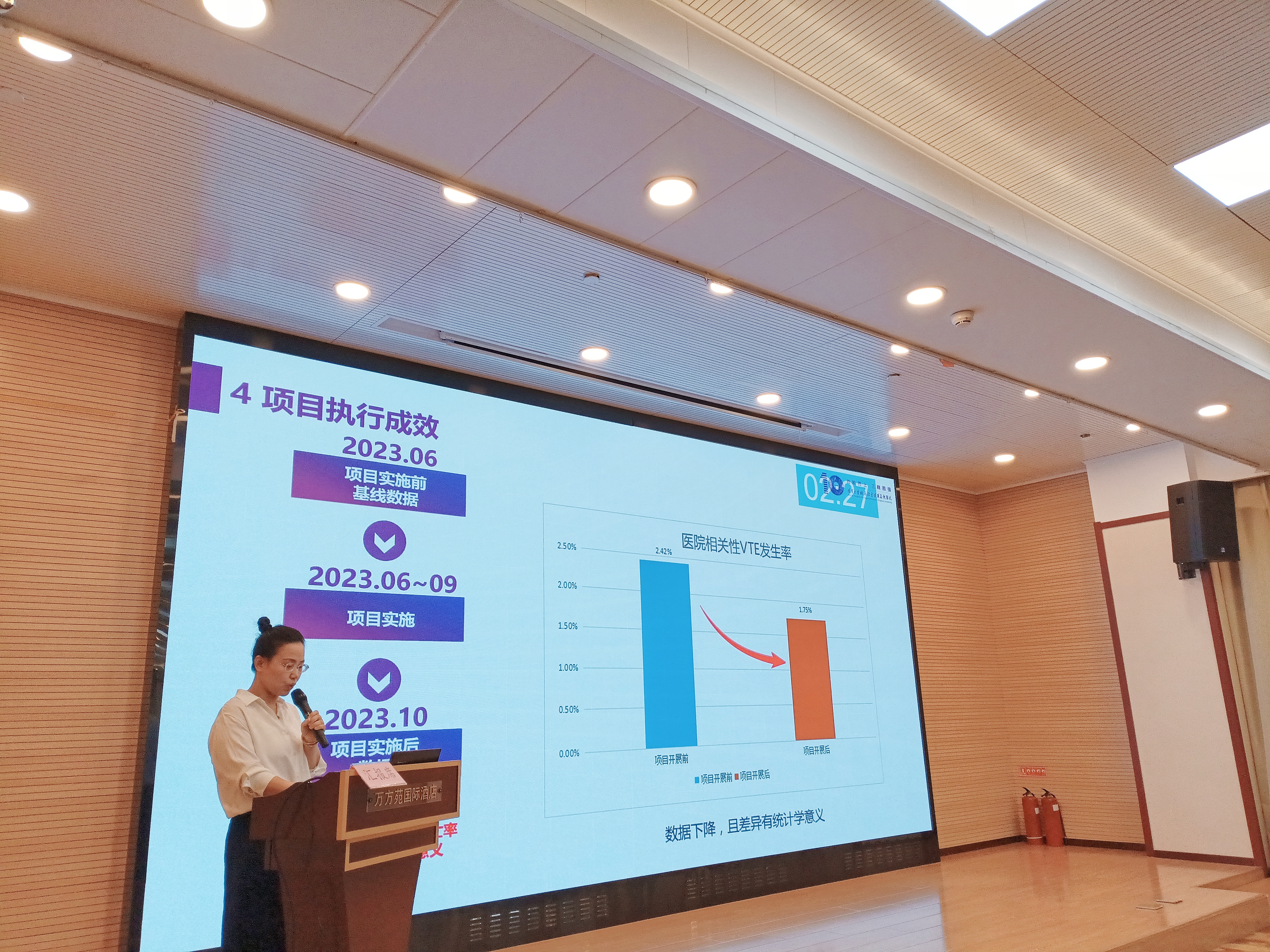 我院品质管理中心王颖倩汇报《通过建立静脉血栓栓塞症(VTE)预防的临床决策提醒信息功能提高住院患者院内VTE的正确预防率》