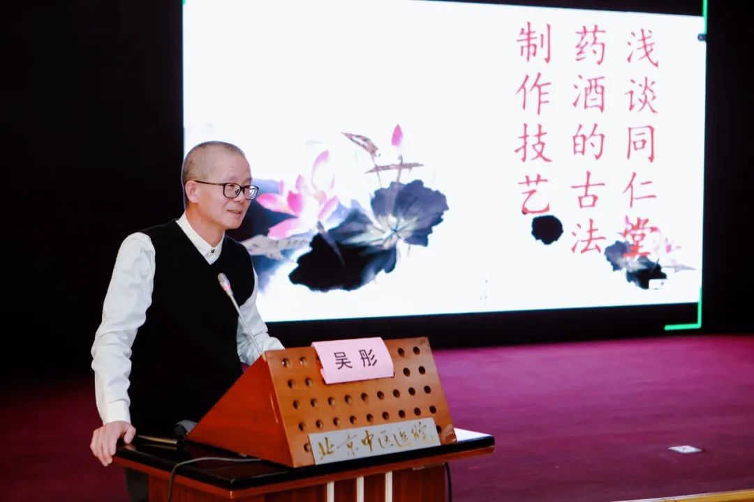 授课环节,北京同仁堂股份有限公司吴彤讲授了同仁堂药酒的起源、工艺特点以及传统制作技艺,图文并茂、生动地展示了同仁堂药酒之所以传承355年的独特之处。