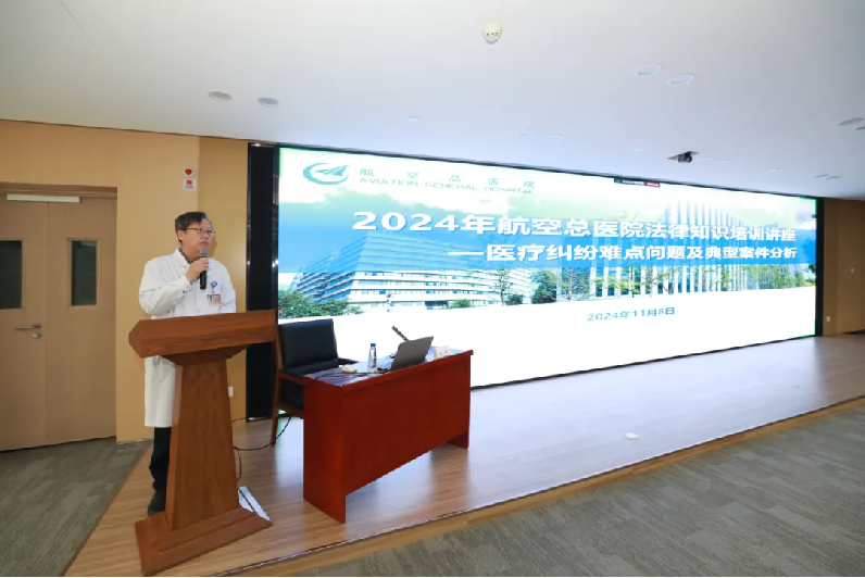 在面向各临床科室负责人、护士长及全体医护人员开展医疗纠纷法律知识培训会上,邀请了北京市海淀区人民法院法官围绕医疗纠纷概况、证明责任适用、损害赔偿详解、典型案例分析、医疗实务建议五个方面,对医疗纠纷领域法律知识进行分析,提高医务人员对医疗纠纷的认识,增强法律风险防范意识,提高医疗服务质量,加强医患沟通,预防医疗纠纷的发生。