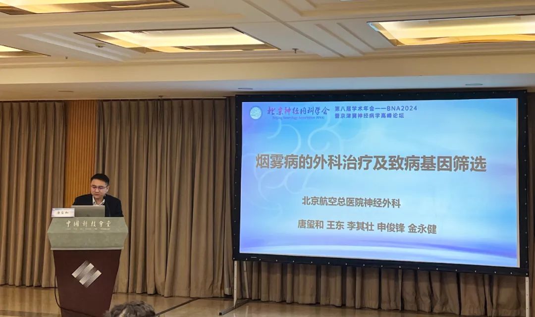 11月9日,航空总医院神经外三科副主任医师唐玺和博士,在北京神经内科学会第八届学术年会暨京津冀神经病学高峰论坛上做《烟雾病的外科治疗及致病基因筛选》报告,受到参会者的高度认可和评价。