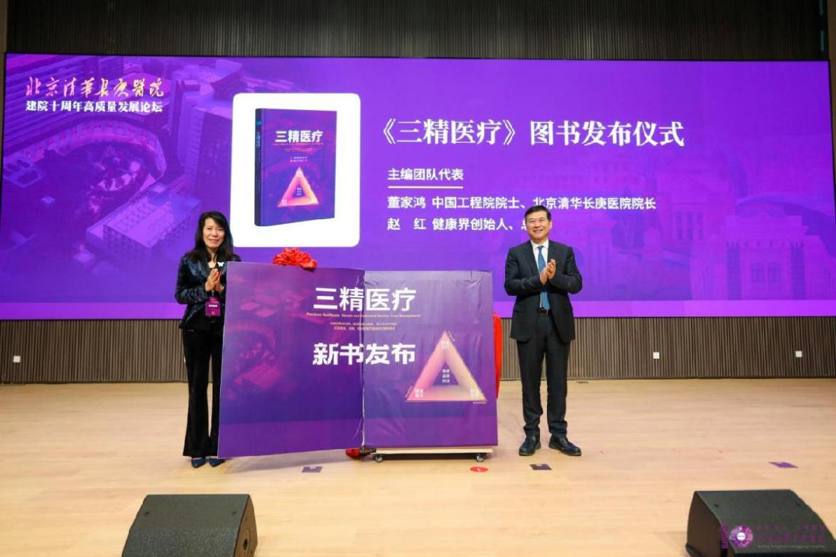 董家鸿院长(右)、健康界总裁赵红发布《三精医疗》新书,该书围绕医院价值体系中的重要组成部分——精准医疗、精诚服务、精益管理“三精医疗”理念,阐述了医院如何通过“三精医疗”理念,提供优质、高效、经济的医疗服务,以及在现代化医院治理体系建构中取得的成效。
