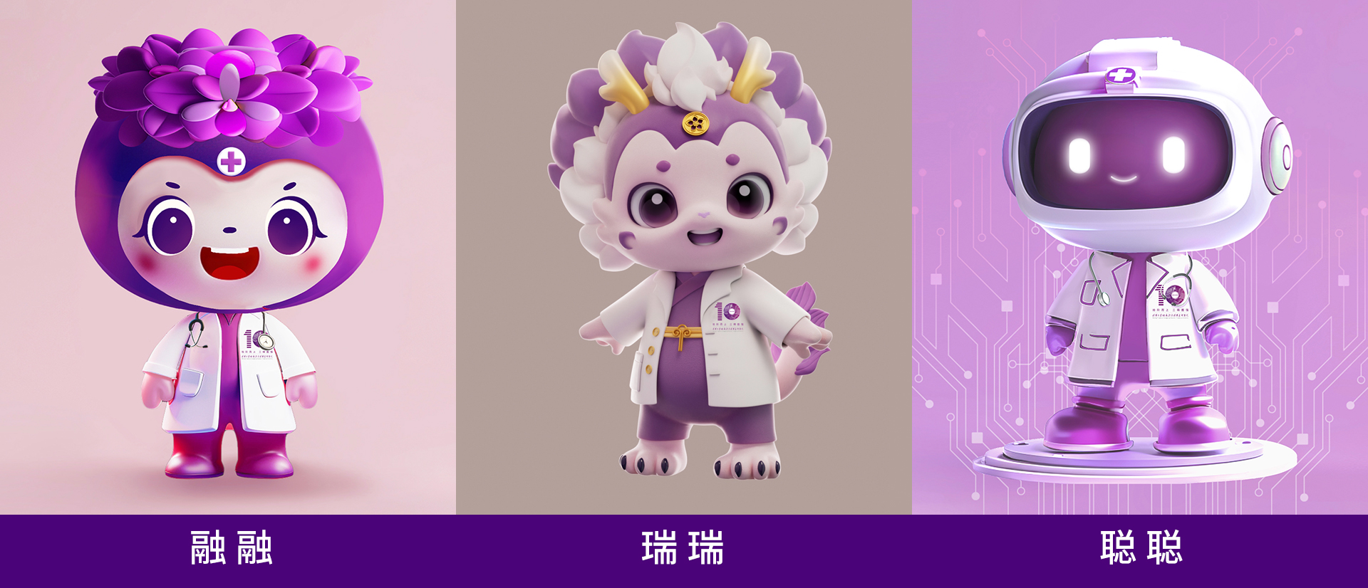 医院吉祥物IP形象发布,分别为象征团结与多元融合的融融,象征吉祥、勇敢和希望的瑞兽瑞瑞,象征未来智慧医疗的聪聪。