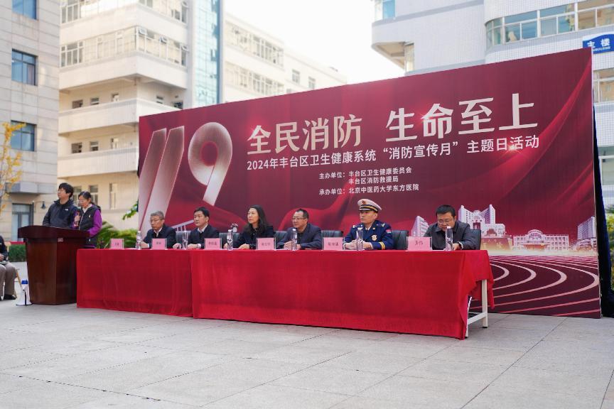 活动现场,丰台区卫生健康委副主任麻永怀、丰台区消防救援局副中队长吴晓涵、方庄街道办事处副主任谢斌、方庄街道办事处平安办主任张伟、北京中医药大学东方医院党委书记韩振蕴、副院长吴疆,以及丰台区多家重点医疗机构的代表等400余人共同参与了这一重要的安全教育活动。