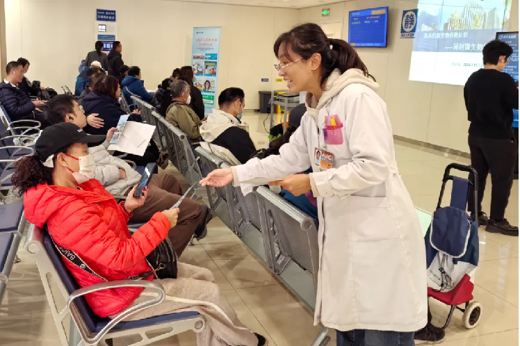 药学部人员为患者进行药学咨询及抗微生物药物知识宣教