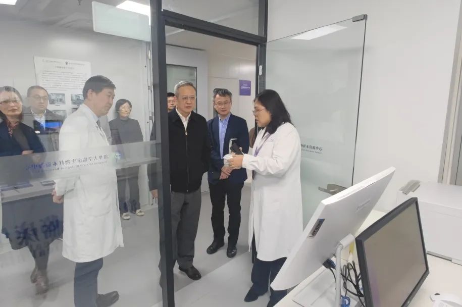 刘登峰(右三)参观数智肝胆病学教育部重点实验室