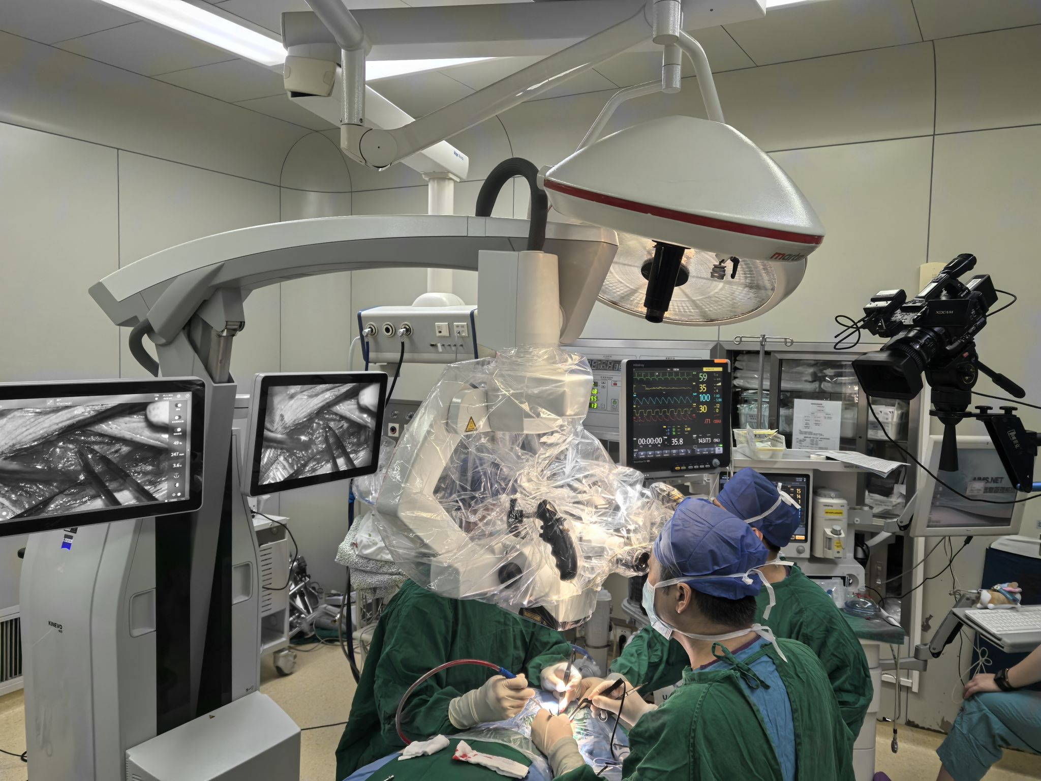 理论授课结束后,学员们观摩学习了多台颈动脉狭窄和颈动脉体瘤手术。术者为王涛、韩芸峰和马国佛三位医师,吴超医师进行了会场讲解。