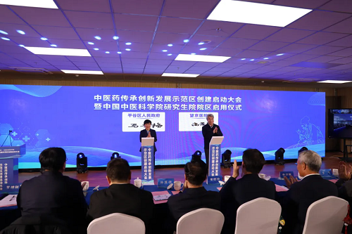 11月30日,中医药传承创新发展示范区创建启动大会暨中国中医科学院研究生院院区启用仪式举办。中国工程院院士、中国中医科学院党委副书记、院长黄璐琦,中国工程院院士、中国农业大学校长孙其信,中国中医科学院党委常委、纪委书记于林勇,国家卫生健康委卫生发展研究中心副主任甘戈,国家自然科学基金委员会高技术研究发展中心主任张洪刚,北京市卫生健康委党委委员、北京市中医药管理局党组书记、局长罗增刚,平谷区委书记唐海龙,区委副书记、区长狄涛,区人大常委会主任刘震,区政协党组书记张晓峰,区委副书记葛海斌出席,并启动平谷区中医医院“平急两用”综合大楼建设工程开工。