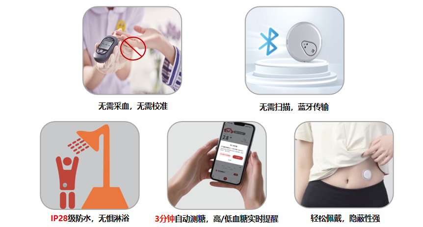 别怕,现在有新技术手段能够帮到你了——持续葡萄糖监测(CGM)技术,不需反复扎针,帮助你实现“动态监测,轻松控糖”。