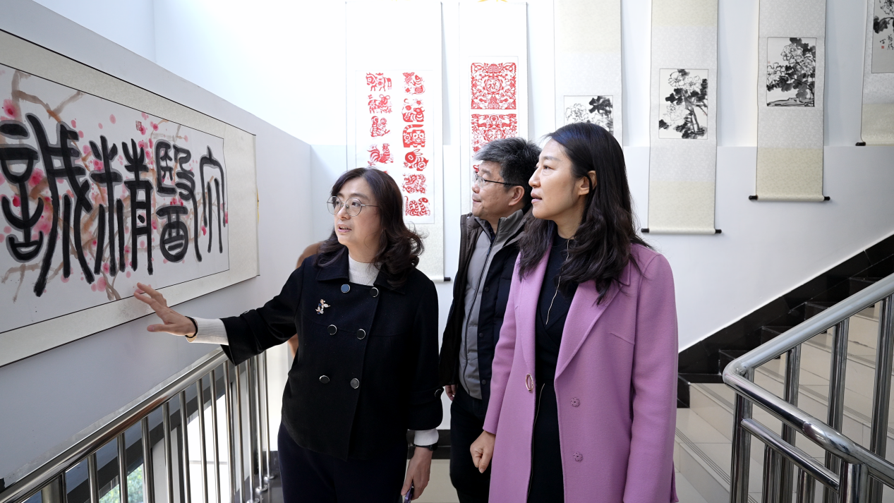 最后,大家齐聚 “墨舞东方•雅韵拾阶”职工作品展区,共同欣赏了医院职工精心创作的艺术作品,展区巧妙利用一二层楼梯空间,展现了医者们独特的艺术才华和对医学的深厚情感。来宾们在欣赏作品的同时,也深刻感受到了医者们仁心与才情的交融。