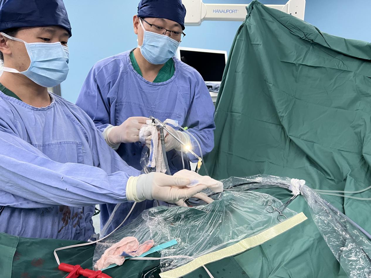 87岁高龄的徐奶奶,腰腿痛20余年,反复发作,尤其是近一个月复发加重甚至无法下地行走,来到东方医院骨科就诊。入院初期,骨科对徐奶奶进行了系统性保守治疗,一周时间过去了,老人的症状仍无明显缓解。面对此种情况,骨科学术带头人、医院分院区执行院长、医务处处长柏立群组织科室医生对病例进行讨论,充分分析患者病情,结合完整的影像学检查,明确了导致患者病痛的主要责任节段在L4-5、L5-S1两处。如果采取手术治疗,既要对责任阶段进行充分广泛减压,又要考虑到患者高龄、高血压等基础状态较差等不利因素,在与患者及家属充分沟通后,最终选择了组织损伤较小,恢复较快的最新的UBE技术进行腰椎后路减压手术。方志远主诊医师组在麻醉科团队精心保障下,顺利完成了东方医院首例UBE技术下L4-5、L5-S1腰椎管及神经根根管扩大减压、腰椎髓核摘除术。