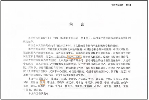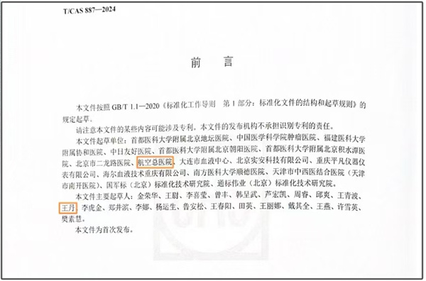 对于两项标准的起草,作为起草单位之一的航空总医院高度重视。在医院领导大力支持与指导下,医院于2022年成立标准起草小组,进入项目设计及准备阶段。项目实施后,医院检验科多次与合作单位进行统筹协调;检验科主任技师王丹作为主要起草人之一,全程参与两项标准的调研、起草与修订。在检验科主任及团队人员共同努力下,航空总医院两项标准起草工作历时2年完成。