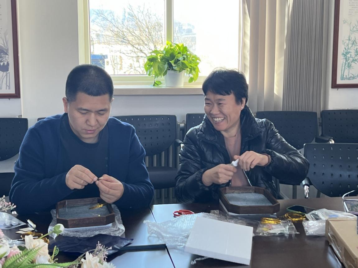 授课结束后,中医科还带来了别具一格的掐丝珐琅制作体验活动。参与者们全情投入,沉浸于掐丝珐琅画的精美世界,感受金丝古韵,领略非遗文化的迷人魅力。