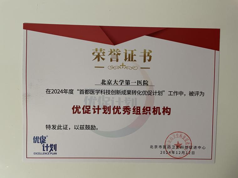 在具体实践中,北大医院建立了“临床研究成果转移转化中心+学科兼职技术经理人+第三方机构”的协同工作模式,成绩斐然,成为全市医疗机构中赋能项目获立项目最多的单位,被评为“优促计划优秀组织机构”、“优秀参展单位”。