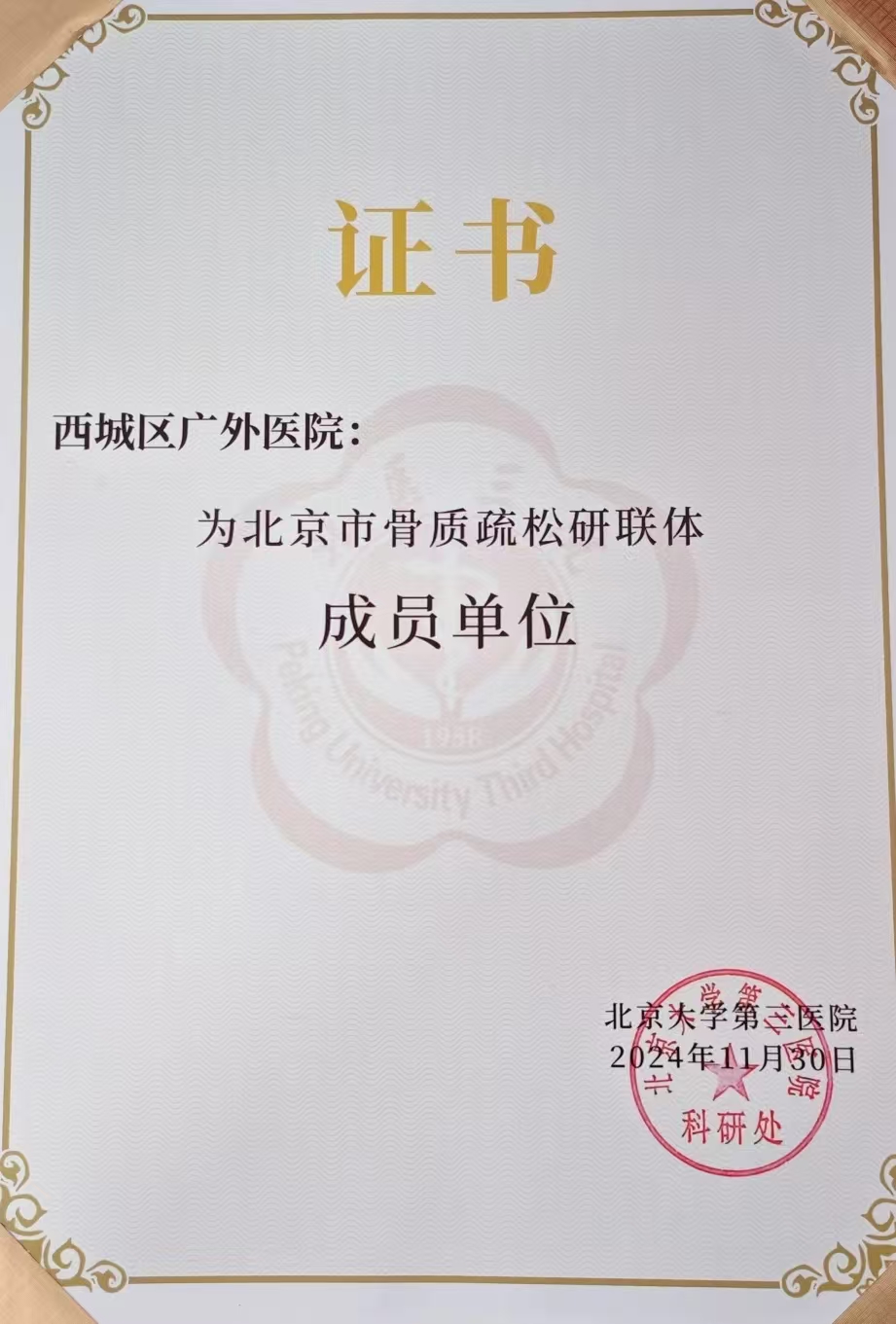 广外医院成为北京市骨质疏松研联体项目成员单位