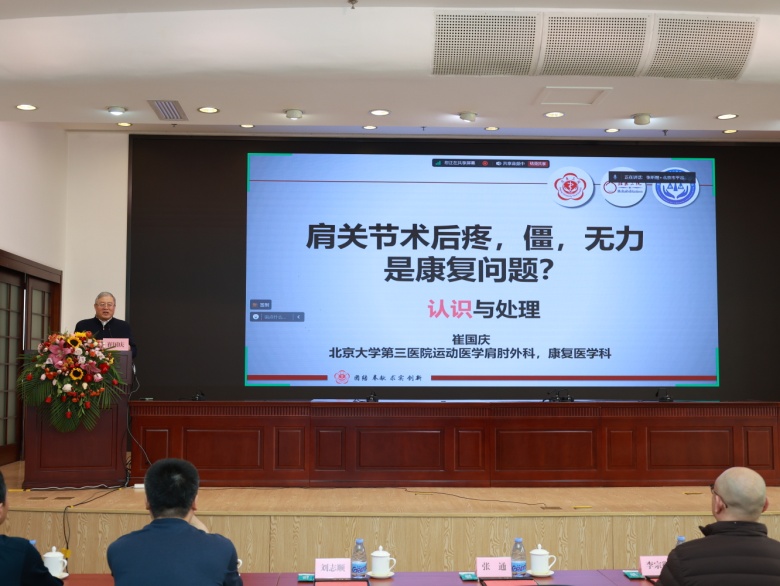 肩关节术后僵硬一直是困扰众多患者与医疗人员的难题,北京大学第三医院运动医学肩肘外科/康复医学科主任崔国庆教授在肩肘外科领域深耕多年,对于肩关节术后僵硬的认识与处理具有丰富的经验和独到的见解。崔教授以病例分享的形式向我们介绍了可能引起肩关节术后僵硬的原因,例如感染、水肿、异物的伤害等等,并指出肩关节术后僵硬并不能盲目地进行康复训练,若是不能精确地明确病因,康复治疗可能难以取得理想的成效。必要时要通过检查及化验等手段全面深入地进行分析诊断,给予针对性的治疗,才能为后续制定科学有效的治疗方案提供坚实可靠的依据,最终改善患者肩关节功能。崔教授带来的不仅是一次授课,更是一次难得的临床经验分享,针对肩关节术后僵硬这一临床问题提供了更多的诊疗思路。
