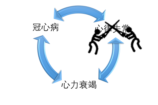 3、心肌缺血、心律失常使心衰恶化;心力衰竭加重心肌缺血和心律失常,三者互为因果,形成恶性循环链。最终导致药物反应差,患者辗转多家知名医院,疗效欠佳。亟需更好的治疗措施,打断这一恶性循环。
