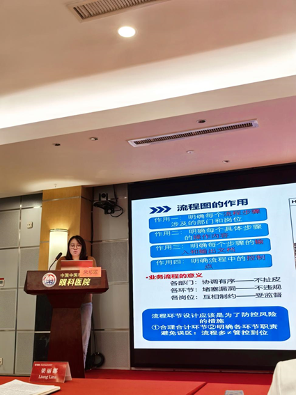 本次会议邀请了内部控制建设专家朱思莲围绕流程体系优化工作开展情况、流程设计方法论、内部控制方法等方面为大家进行专题培训,并在答疑环节对档案管理、无形资产管理、风险评估等相关问题进行了解答。本次专题培训旨在帮助各部门更深刻的了解内部控制流程管控优化、制度流程衔接的方法和细节,以促进全面提升眼科医院内部控制管理水平。