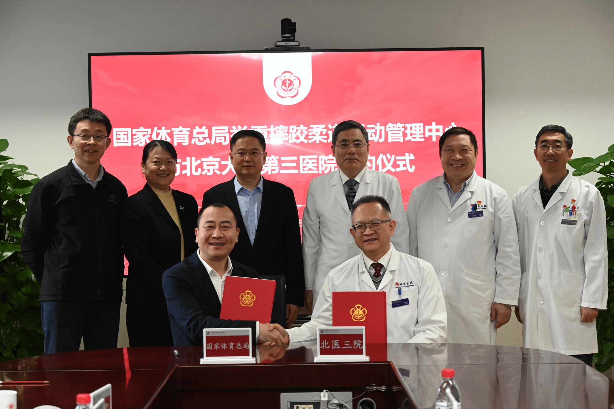 座谈交流会后,北京大学第三医院和国家体育总局举重摔跤柔道运动管理中心签署合作框架协议。